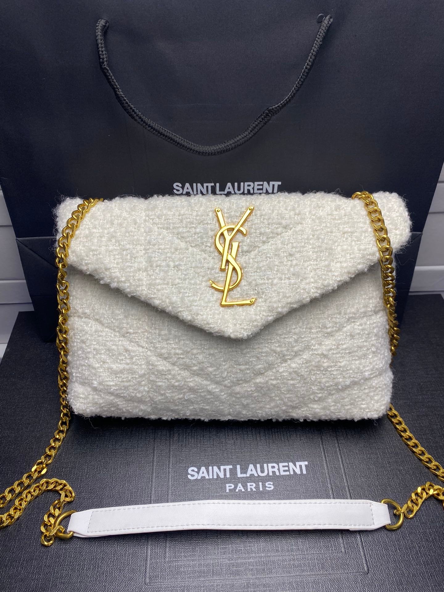 Saint Laurent Small Loulou Boucle Bag White 23Cm
