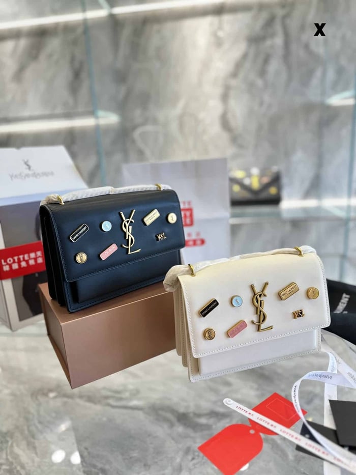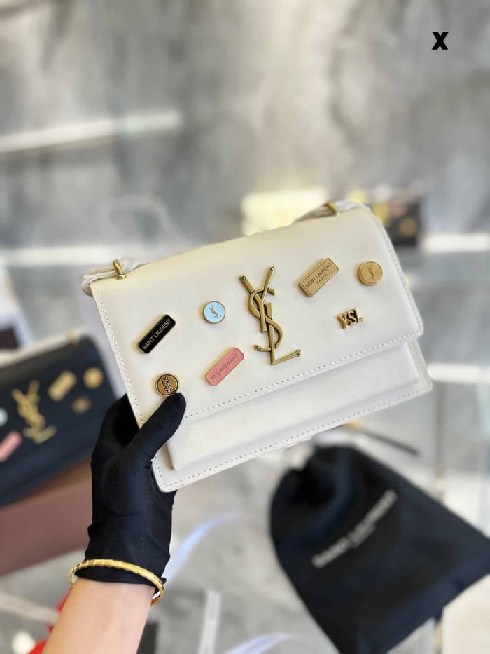 Saint Laurent Sunset Chain Bag In Smooth Leather With Sticker White 22Cm