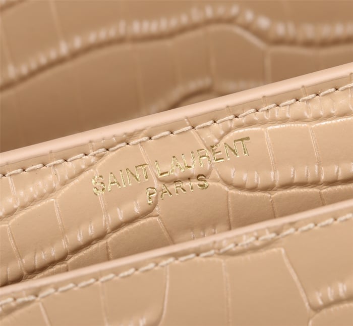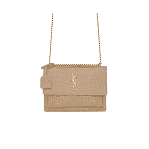 Saint Laurent Sunset Medium Chain Bag In Crocodile Embossed Shiny Apricot 22Cm