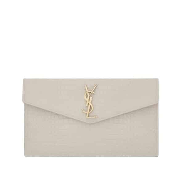 Saint Laurent Uptown Pouch In Crocodile Embossed Shiny Leather