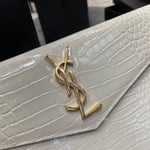 Saint Laurent Uptown Pouch In Crocodile Embossed Shiny Leather