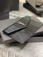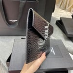 Saint Laurent Uptown Pouch In Crocodile Embossed Shiny Leather