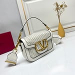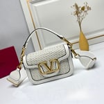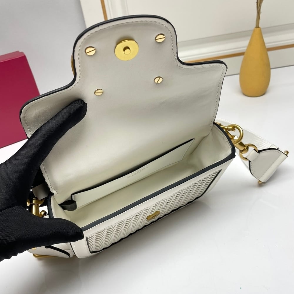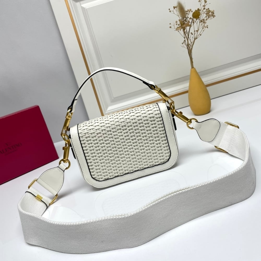 Valentino Garavani Alltime Vlogo Woven Leather Shoulder Bag White 22Cm