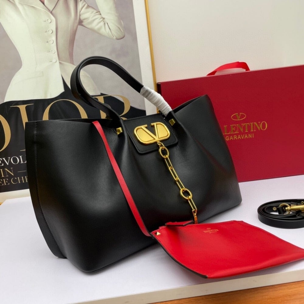 Valentino Garavani Large Vlogo Escape Shopper Tote Black 41Cm