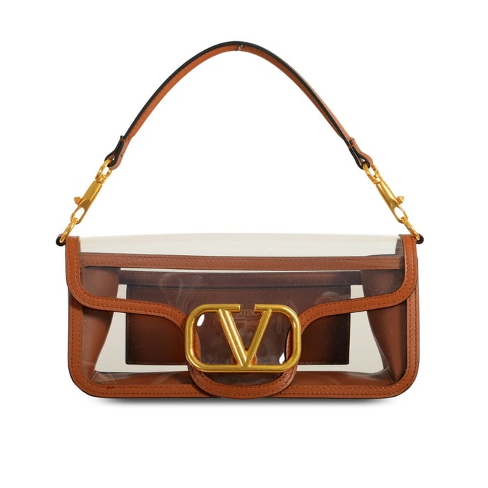 Valentino Garavani Locò Pvc And Leather Shoulder Bag Brown 24Cm