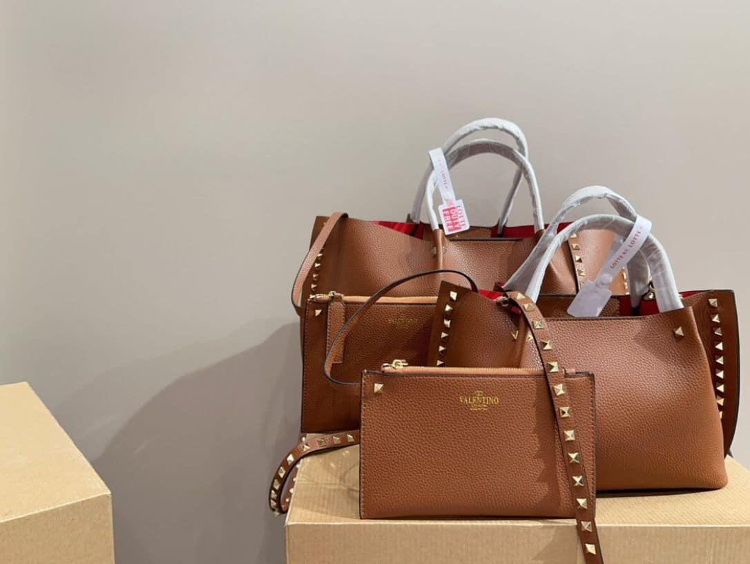 Valentino Garavani Rockstud Leather Tote Brown 36Cm