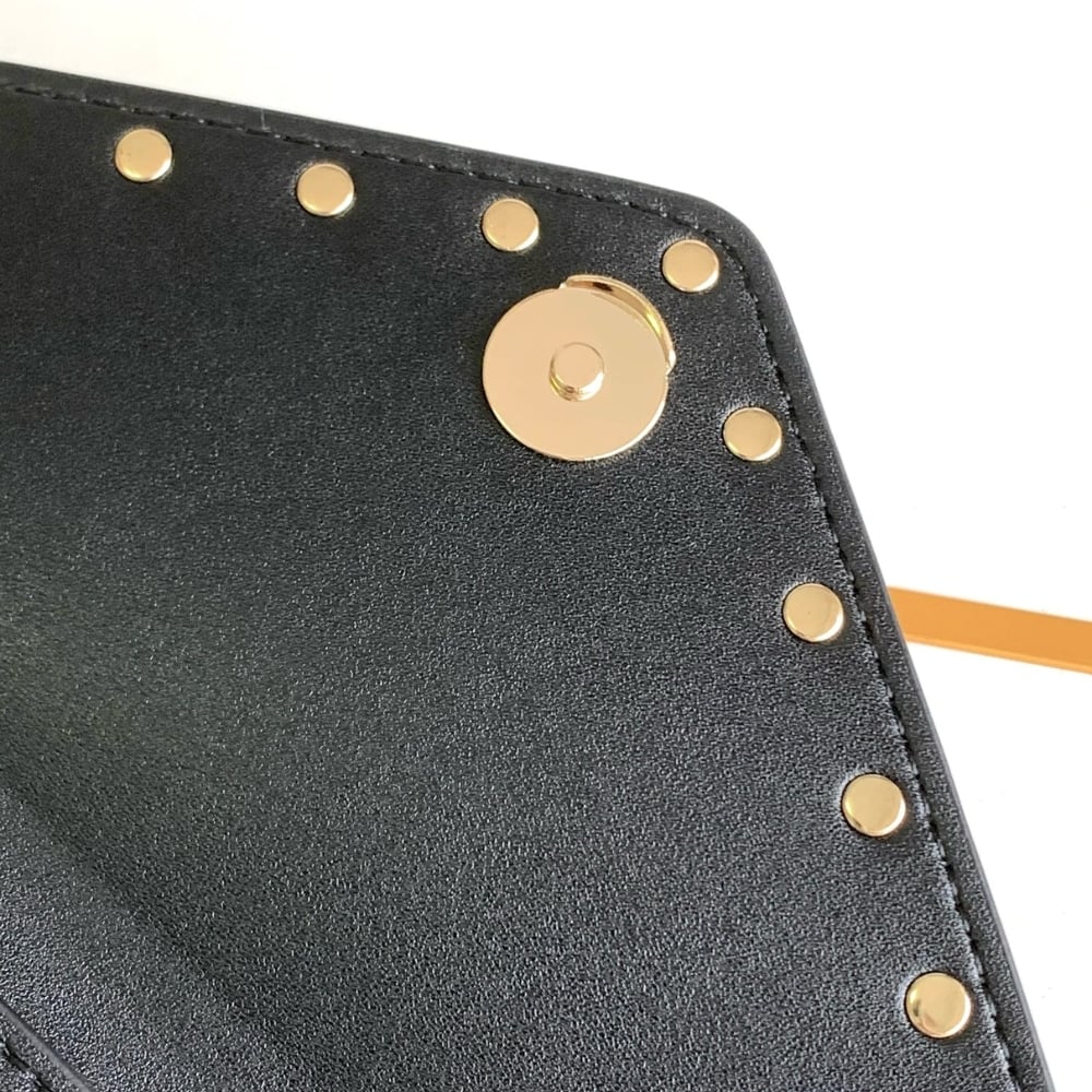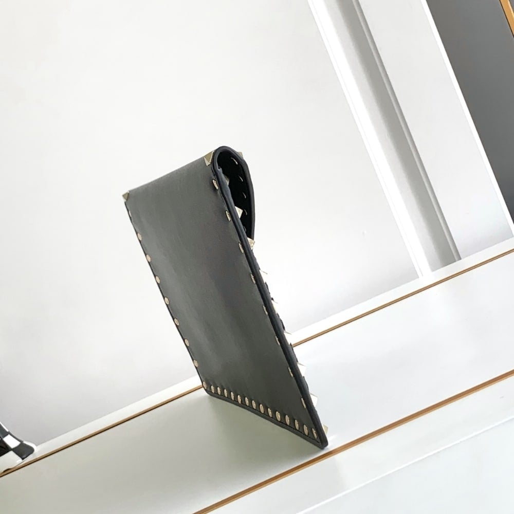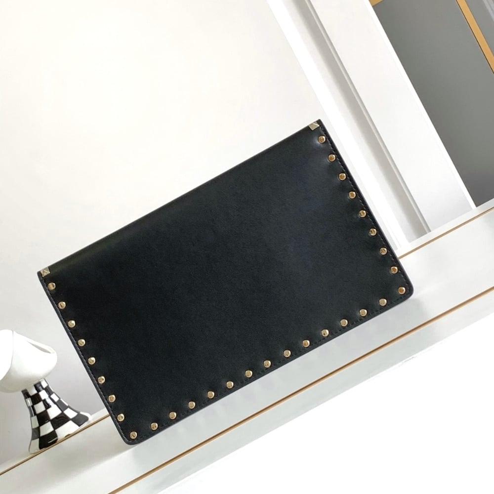 Valentino Garavani Rockstud Raffia Clutch Bag In Black 28Cm