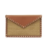 Valentino Garavani Rockstud Raffia Clutch Bag In Brown 28Cm