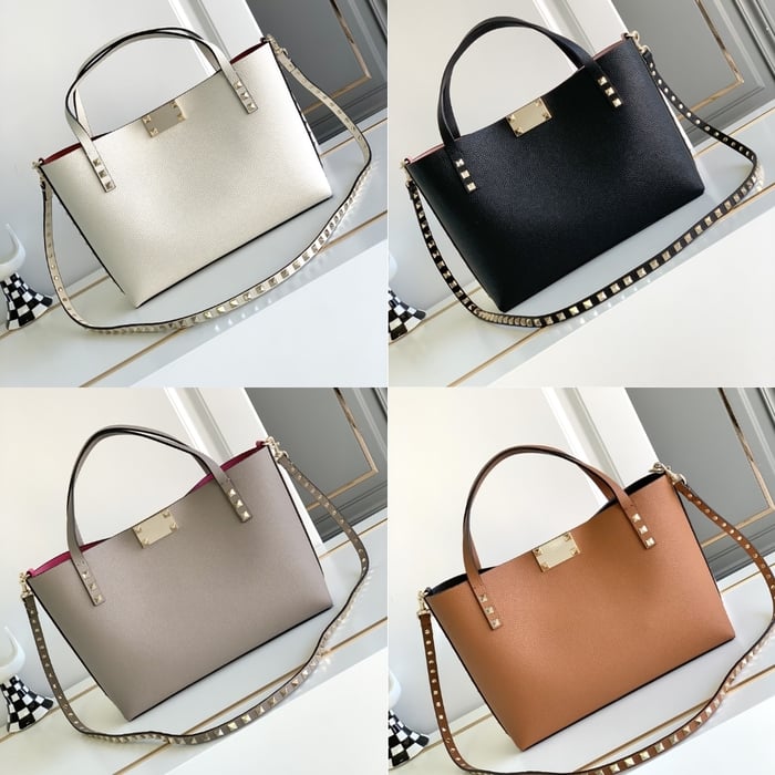 Valentino Garavani Rockstud Small Tote Bag Grey 28Cm