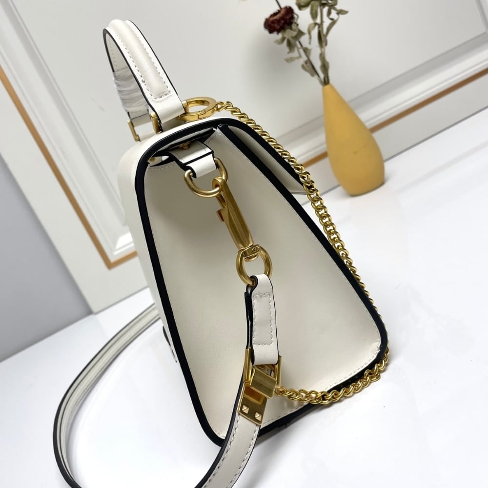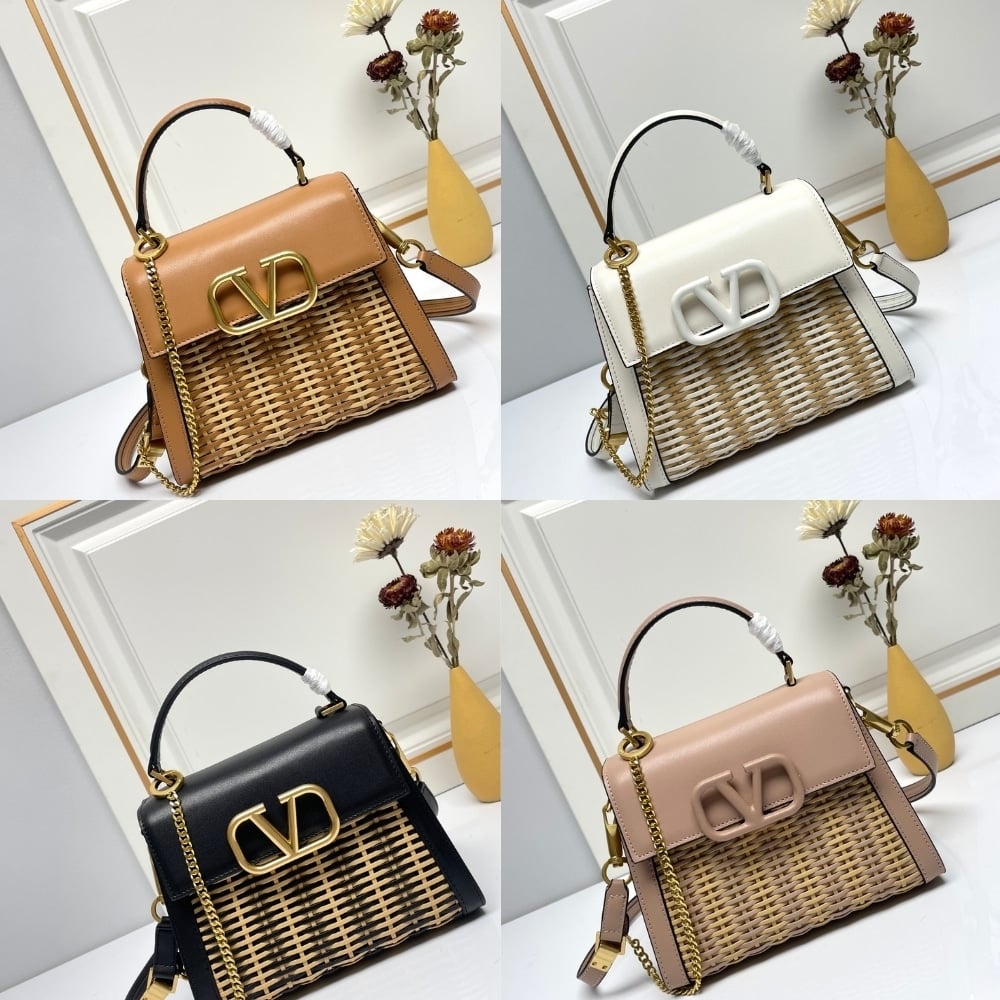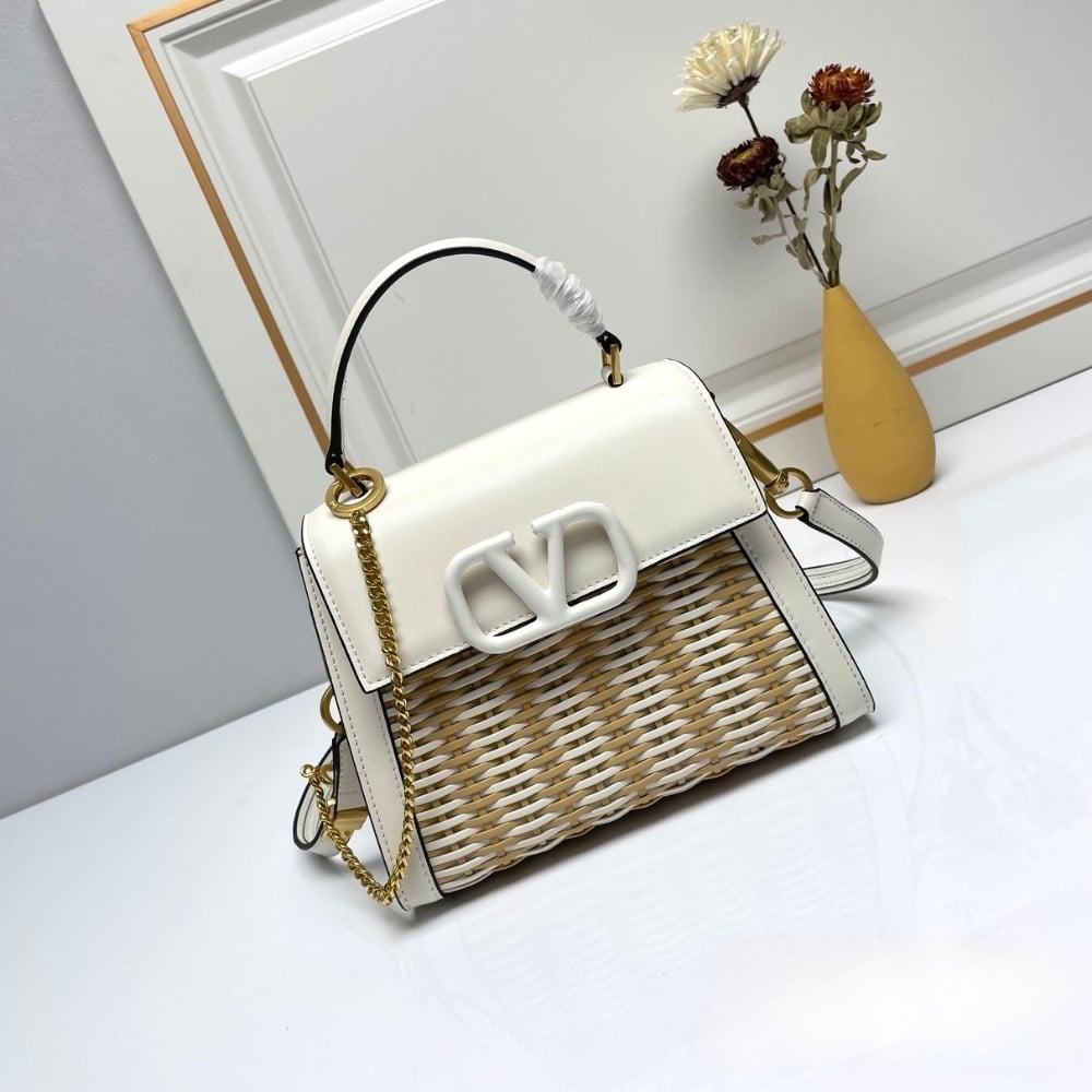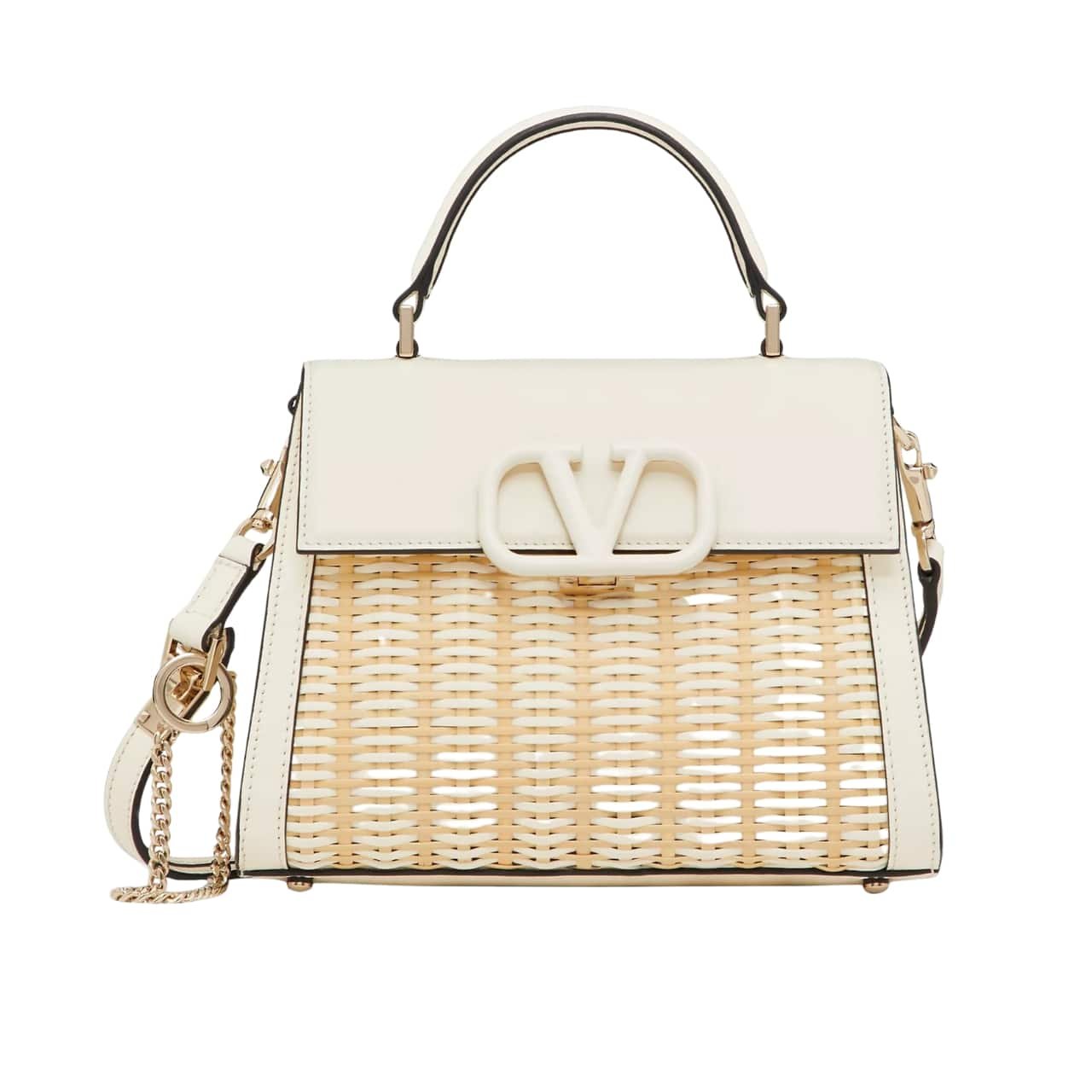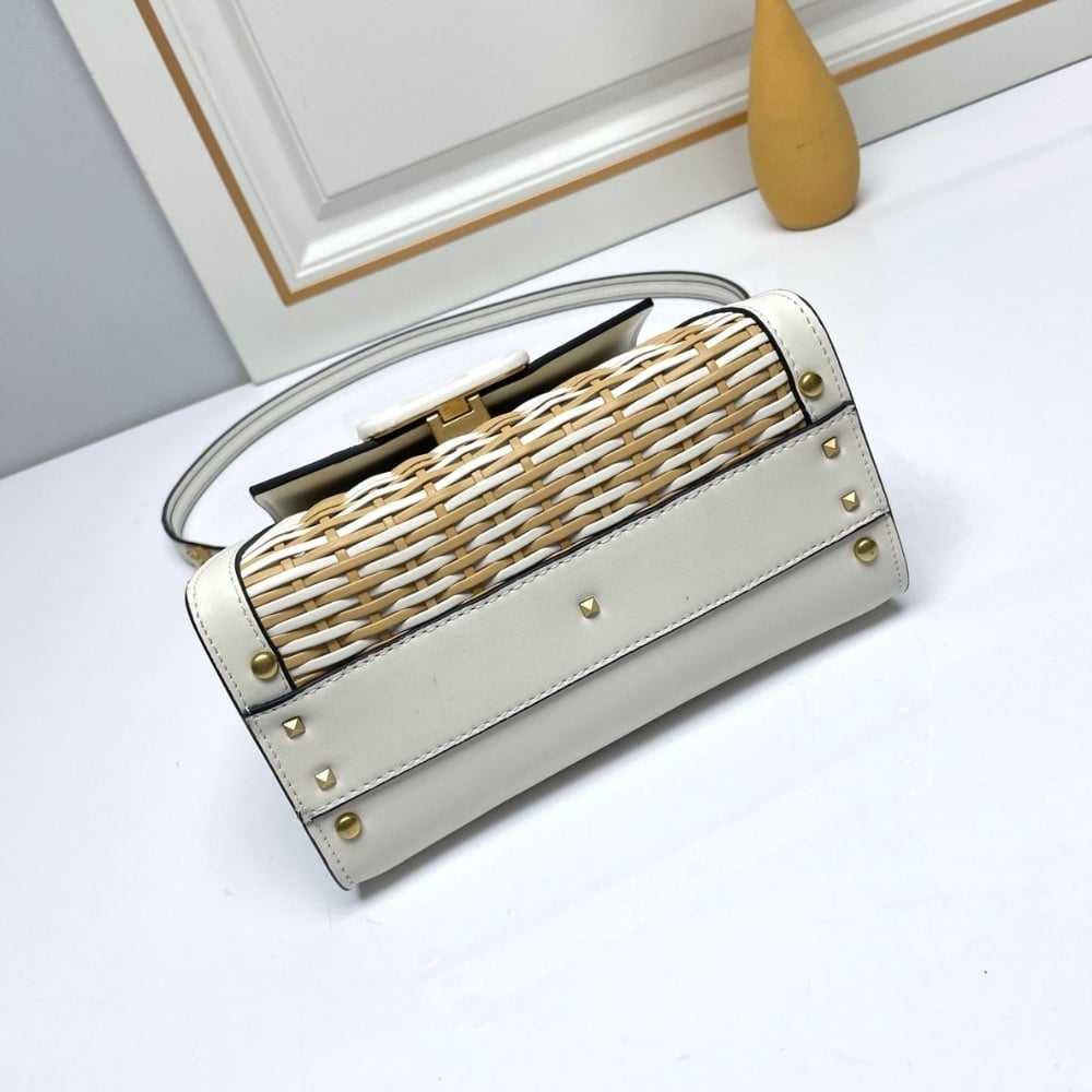 Valentino Garavani Small Vsling Wicker Handbag White 22Cm