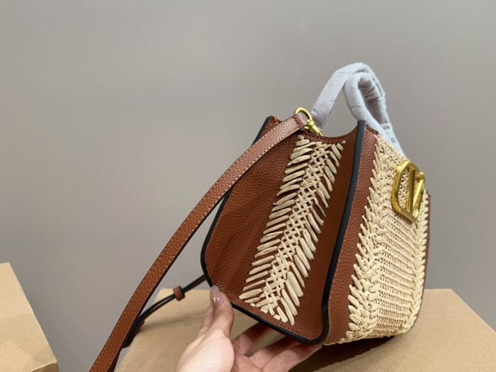 Valentino Garavani Vlogo Signature Handbag With Raffia Embroidery 22Cm