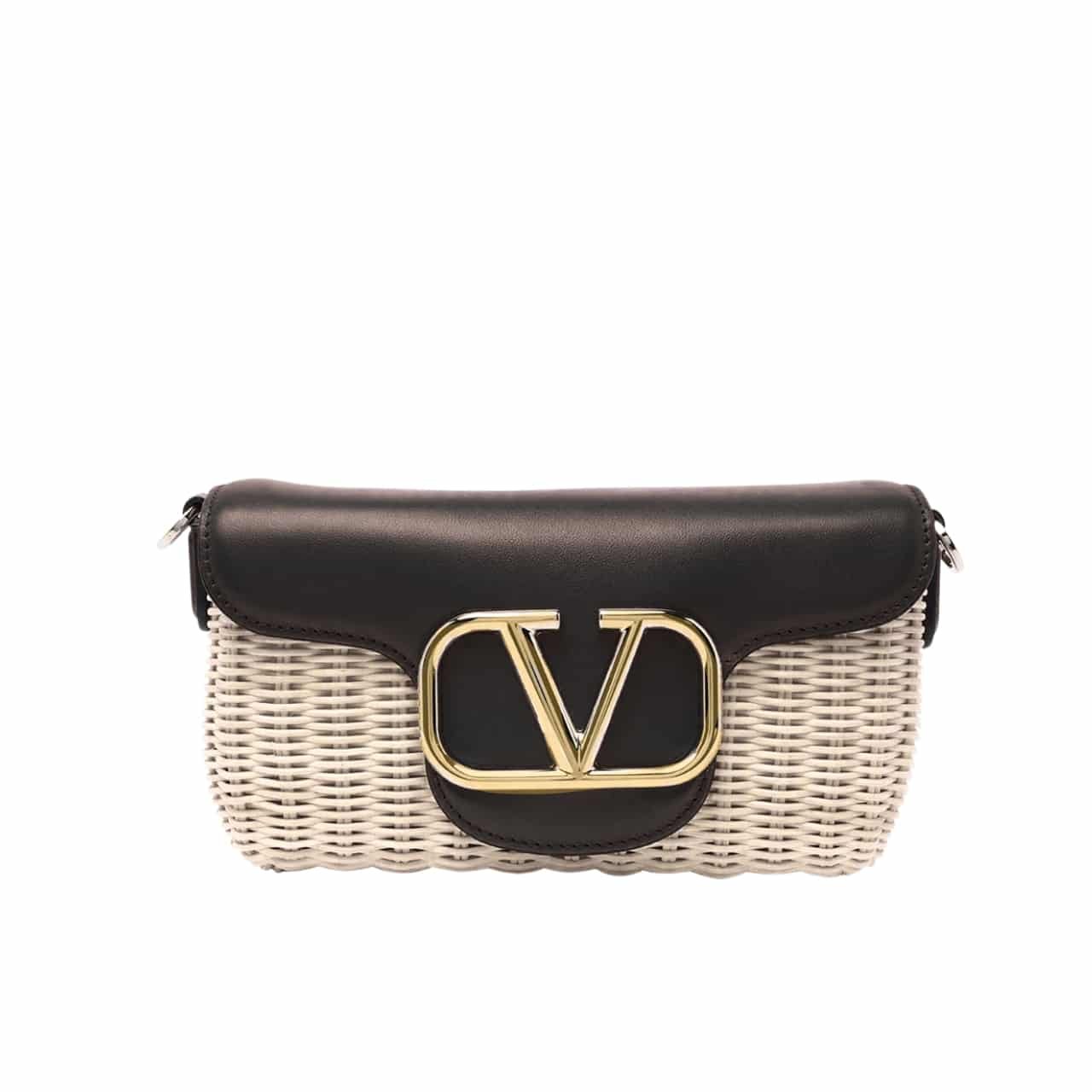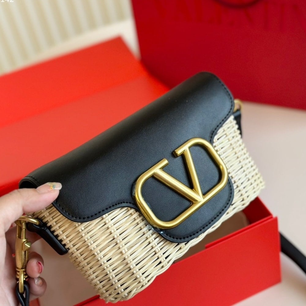 Valentino Loco Vlogo Flap Straw Shoulder Bag Black18Cm