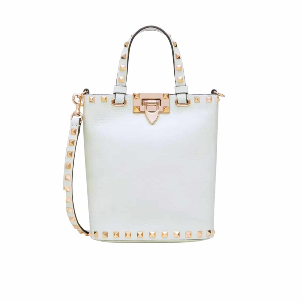 Valentino Rockstud Crossbody Pouch In Grainy Calfskin White 16Cm