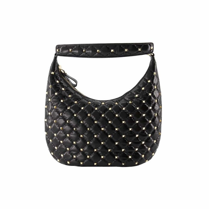 Valentino Rockstud Spike Leather Hobo Bag Black 28Cm 3W2B0M32Was