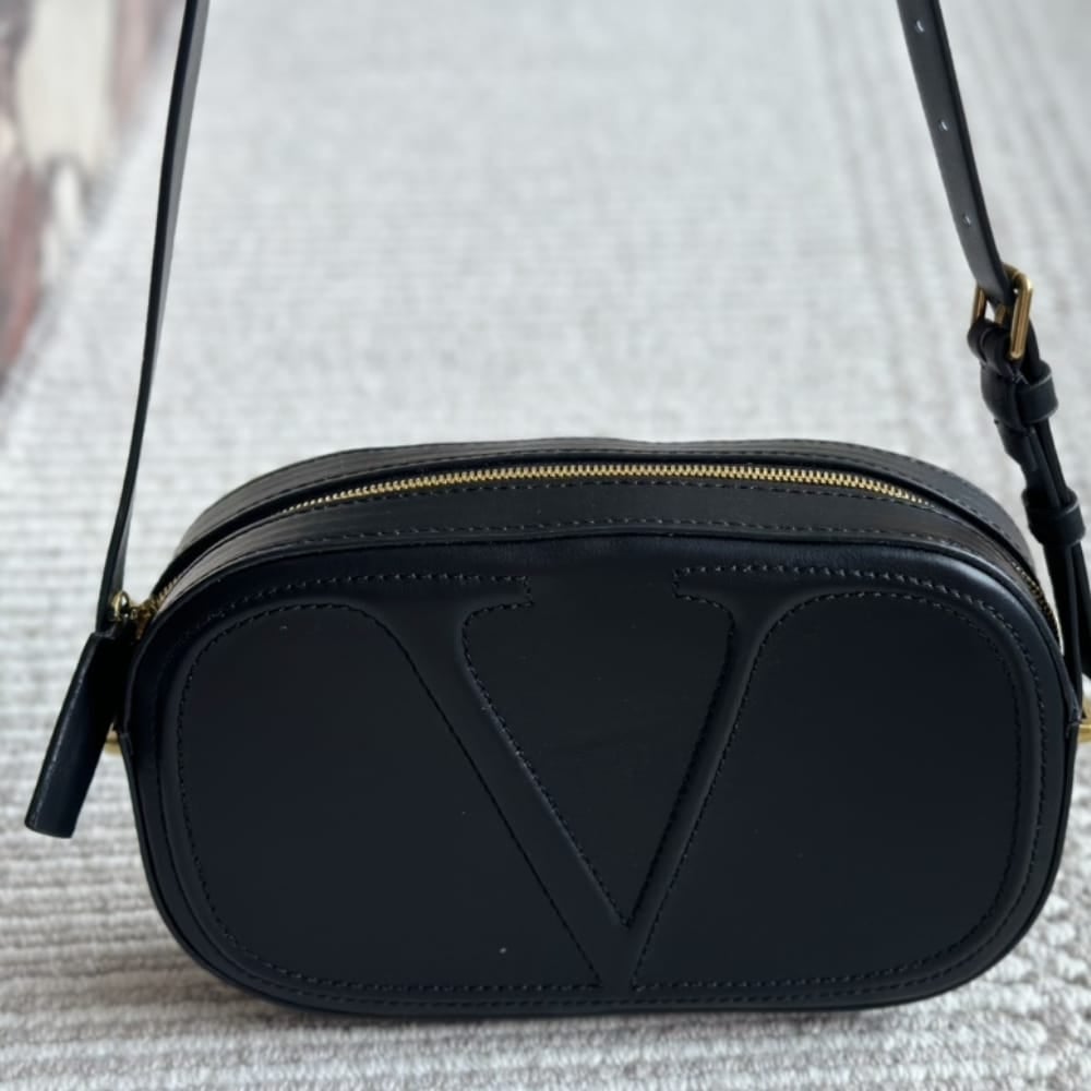 Valentino Vlogo Walk Calfskin Crossbody Bag Black 25Cm