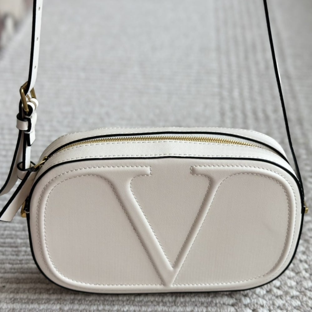 Valentino Vlogo Walk Calfskin Crossbody Bag White 25Cm