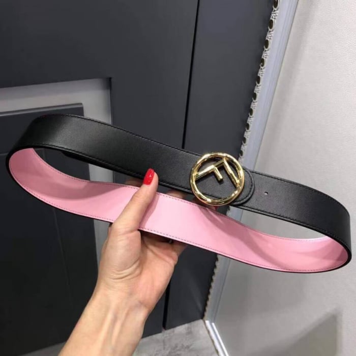 Fendi Reversible 40mm Round Buckle Belt 8C0579 Black / Pink