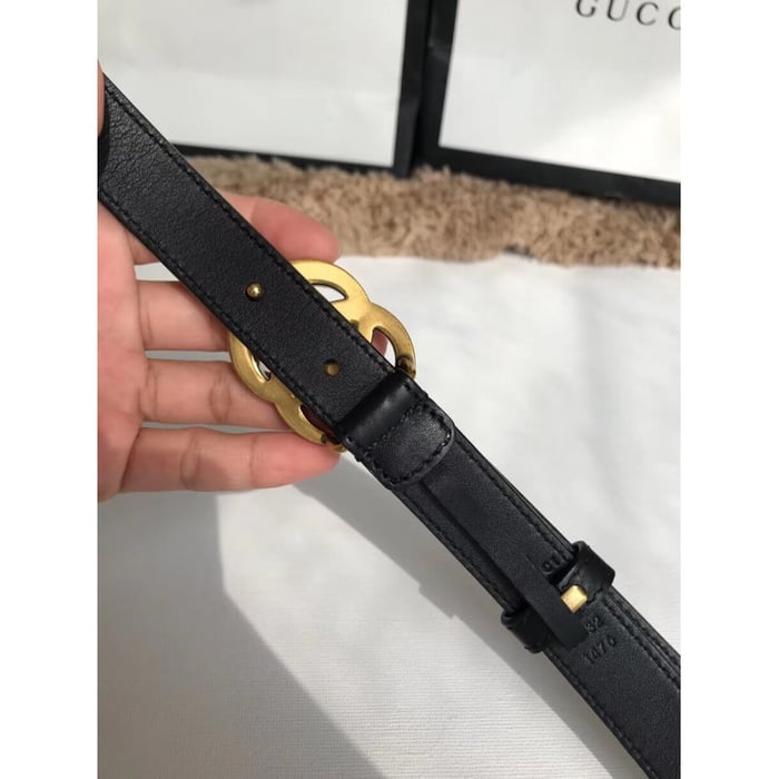 Gucci 20mm Leather Belt With Pearl Double G 453260