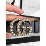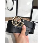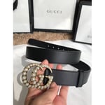 Gucci 30mm Leather Belt With Pearl Double G 453260