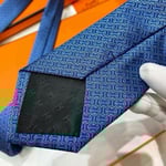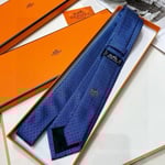 Hermes Navy Blue Fish Pattern Canvas Tie For Men