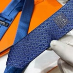 Hermes Navy Blue Fish Pattern Canvas Tie For Men $180.00