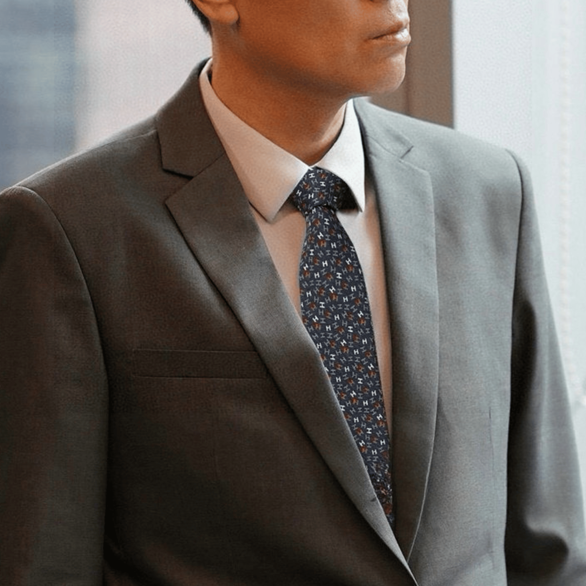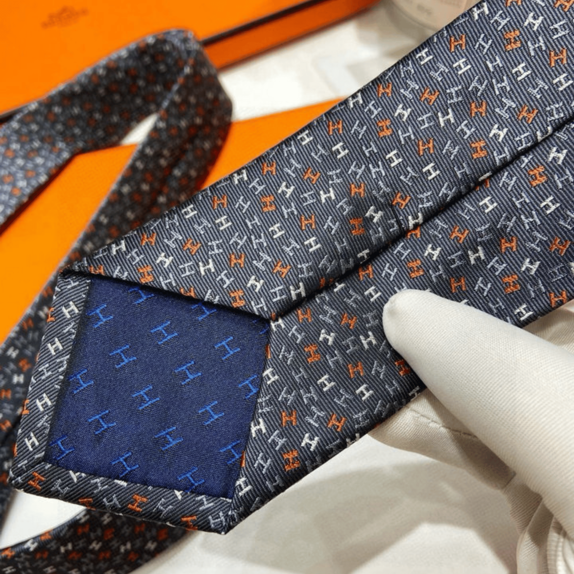 Hermes Dark Gray Multi-Colored H Pattern Canvas Tie For Men
