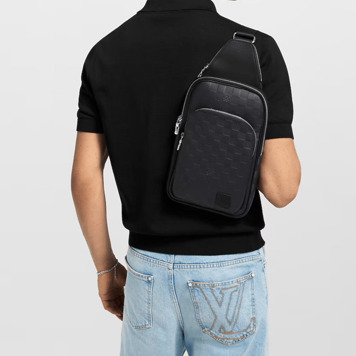 The Avenue Slingbag is made from Damier Infini leather with the House’s classic checkerboard pattern embossed into the leather. The imprint is deep enough to remain over time while still maintaining a supple feel. The adjustable strap can be attached to the D-ring on right or left side of the bag.