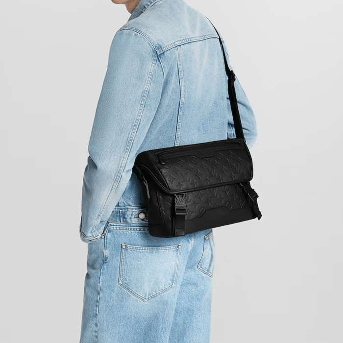 Inspired by the vintage school bag, the Messenger Voyager PM bag is made from Monogram Shadow calfskin. The familiar and comfortable-to-carry shape is enriched with two new signature LV buckles, and a convenient adjustable shoulder strap. A great work bag, its roomy interior can fit a tablet, charger, notebooks, and other daily belongings.