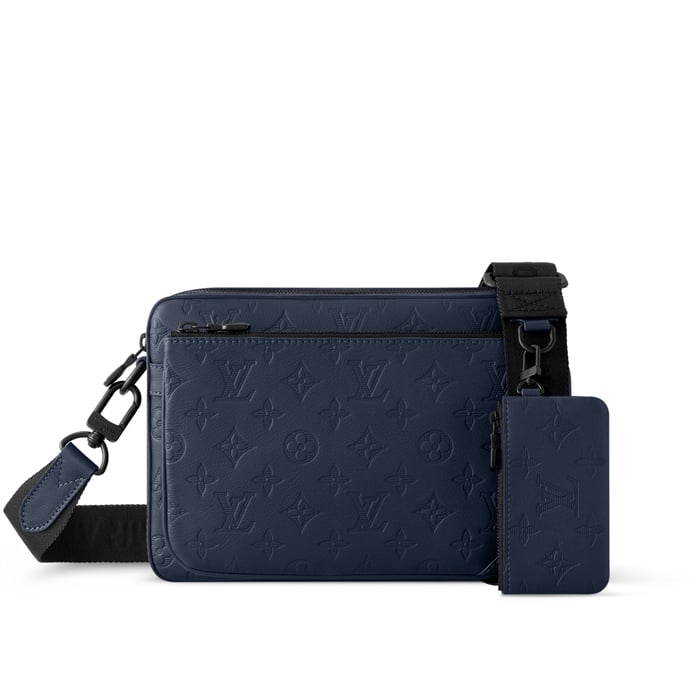 This Trio Messenger bag is fashioned from Monogram Shadow embossed leather in a sporty colorway. The embossed Monogram pattern brings style while the suppleness of the calfskin makes the bag unusually body friendly. The Trio is composed of a main pouch, a removable front zipped pocket, and a small detachable coin purse on the strap.