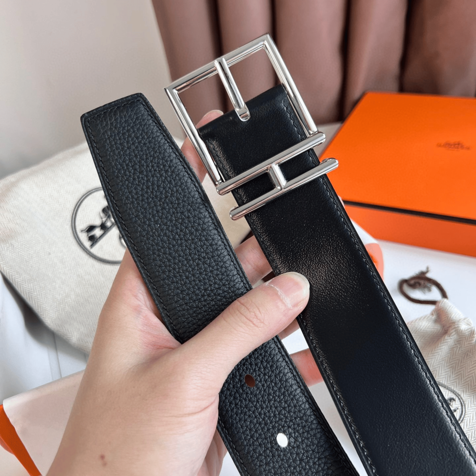 The Hermes belt embodies timeless sophistication with its signature craftsmanship and elegant design. Made from premium leather and finished with the iconic H-shaped buckle, it brings a touch of understated luxury to any outfit. Perfect for both formal and casual looks, this belt represents refined taste and effortless style.