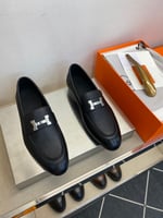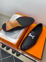 Hermes H-Buckle Black Leather Loafers- Shoes for Men