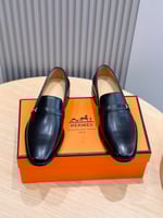 Hermès Paris Loafers Black Calfskin Mini H Hardware- Shoes for Men