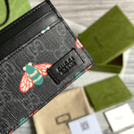 Gucci Card Case Black with Bees Signature 4in/10cm For Men
