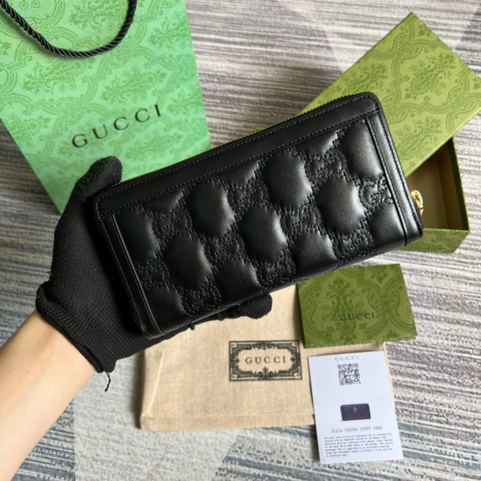 Gucci GG Matelassé Zip-Around Wallet Black 7.6 in/ 19 For Women