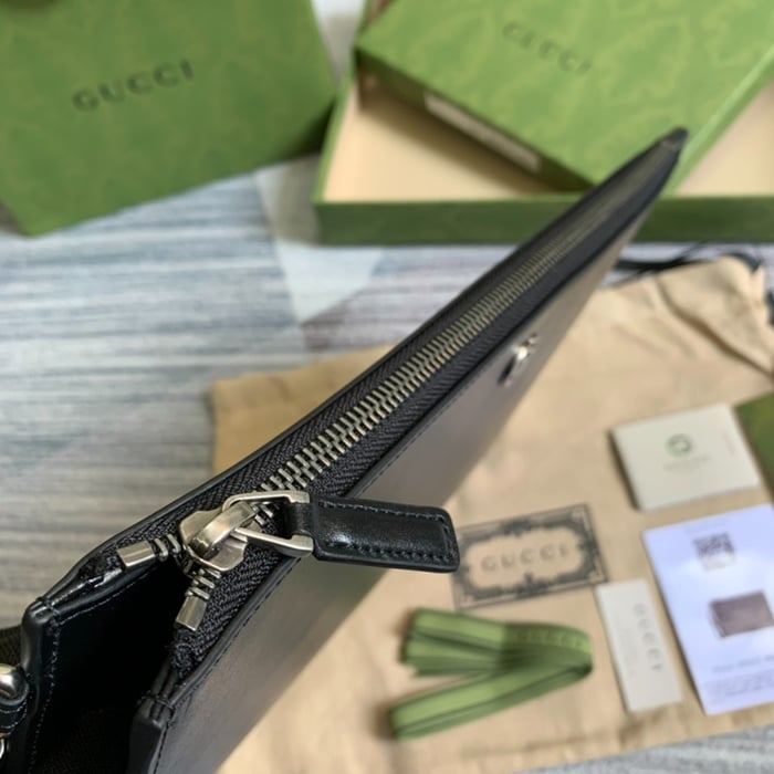 Gucci Pouch in Black With Blade Embroidery 12in/31cm For Men