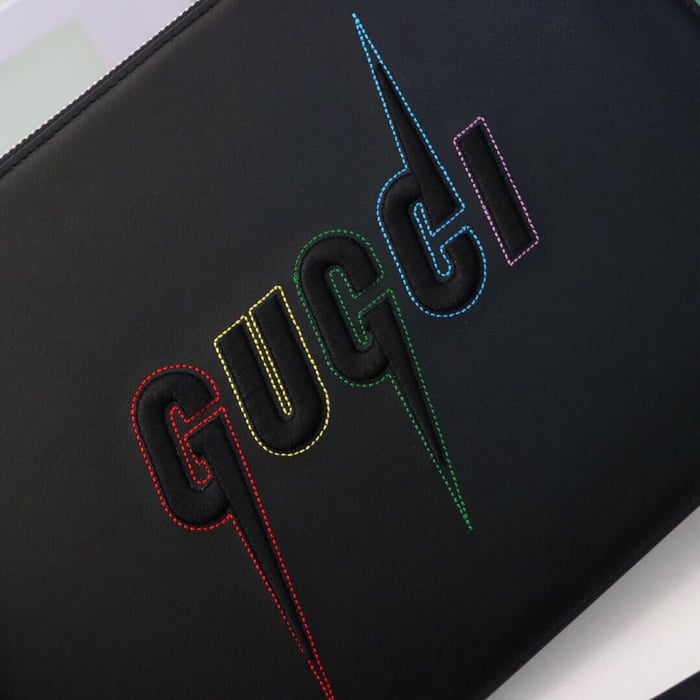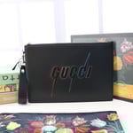 Gucci Pouch in Black With Blade Embroidery 12in/31cm For Men