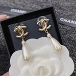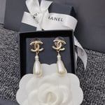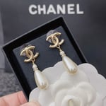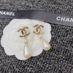 Chanel Cc Pearl Drop Earrings