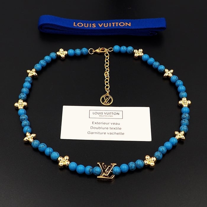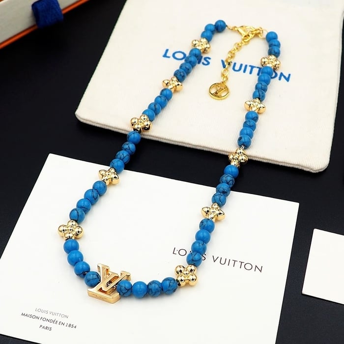 Louis Vuitton Turquoise Pearl Necklace Blue