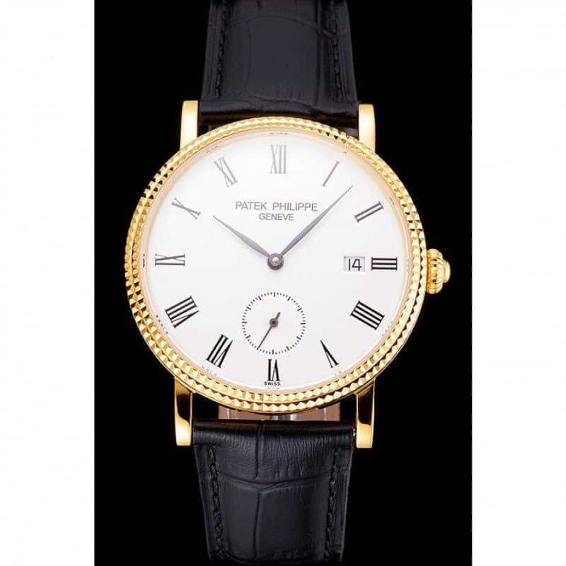 Immerse yourself in the world of luxury without breaking the bank with our Patek Philippe Calatrava replica. Crafted meticulously to mirror the elegance and prestige of the original, this timepiece presents an exquisite white dial nestled within a stunning 38 mm yellow gold-plated case that captures the essence of sophistication and class.