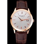 Experience the timeless elegance with our exquisite Patek Philippe Calatrava replica watch. Exclusively designed for those who appreciate the art of fine watchmaking without the hefty price tag, this masterpiece showcases a stunning white dial matched perfectly with a luxurious 40 mm rose gold plated case. Its sleek and simplistic design symbolizes class and sophistication, making it the ideal accessory for both formal and casual attire.