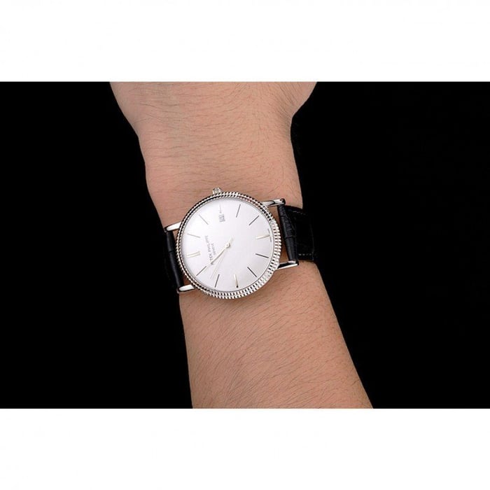The Patek Philippe Calatrava is designed for those who appreciate the finer things in life. Its 40 mm casing ensures a bold presence on your wrist, while the white dial with its clear markings makes reading time a breeze. The stainless steel finish not only adds a touch of sophistication but also ensures longevity and resistance to daily wear and tear.