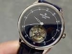 The Patek Philippe Celestial Moon Age 44 mm Platinum 6102P-001 is not just a watch; it’s a marvel of craftsmanship and technology. Crafted from the finest platinum, it’s a symbol of luxury that stands out in any collection. The Celestial Moon Age feature offers an astronomical display, showcasing the moon’s phase and motion among the stars, making you carry a piece of the night sky on your wrist.