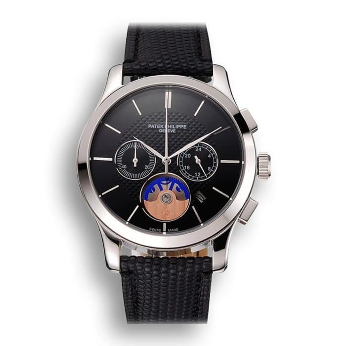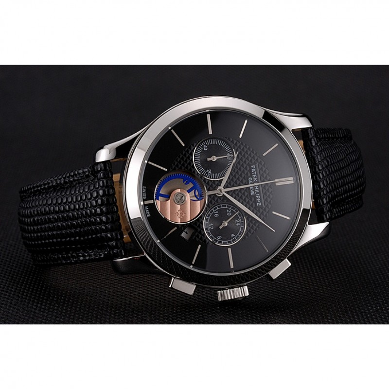Introducing our latest collection, the Patek Philippe Chronograph Dial Black 43 mm Stainless Steel. This exquisite timepiece represents the pinnacle of precision and elegance, crafted for those who appreciate the art of fine watchmaking. Its sleek, 43mm stainless steel case houses a captivating black dial, featuring a chronograph function that combines functionality with style. Delving into the world of replica watches, this model offers the luxury and prestige of Patek Philippe at an accessible price point, allowing you to enjoy the feel of extravagance without breaking the bank.
