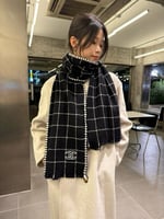 Chanel Cashmere Scarf Checkered White For Women 185cm $249.00