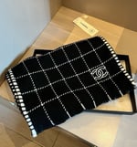 Chanel Cashmere Scarf Checkered Black For Women 185cm