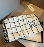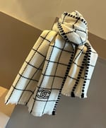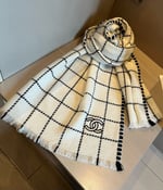 Chanel Cashmere Scarf Checkered White For Women 185cm