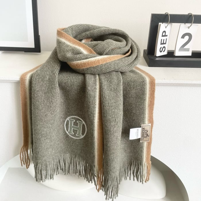 Hermes Cashmere Scarf H-Motif Gray For Women 180cm