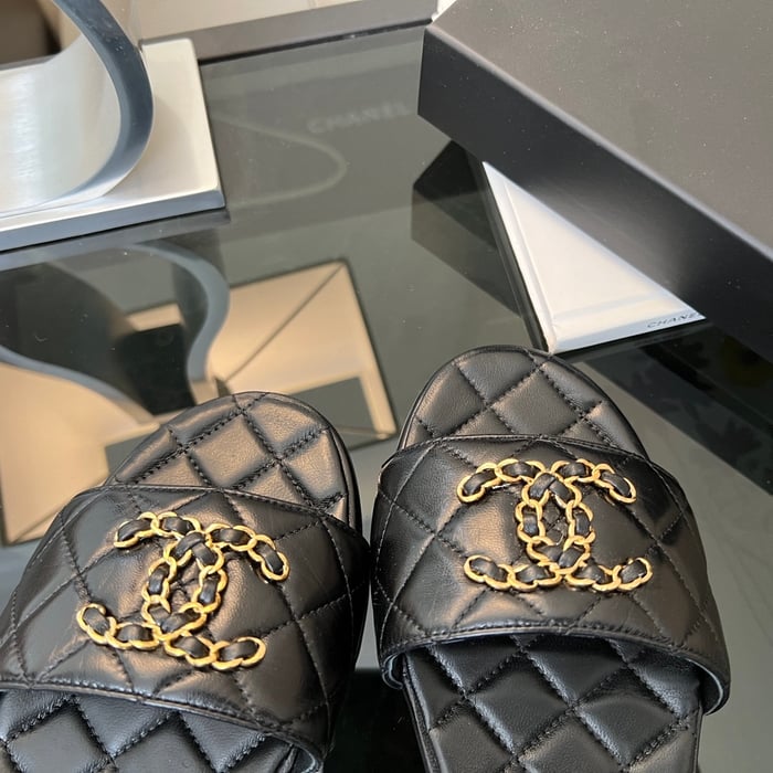 Chanel 23P Quilted Cc Chain Mule Sandal Black G39954 X56940 94305