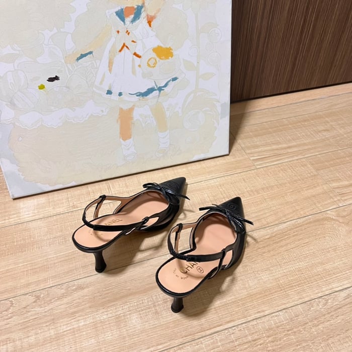 Chanel Cc Leather Pointy Toe Pumps Slingbacks Sandals Black
