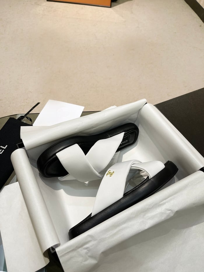 Chanel Cc Logo Criss Cross Slides White